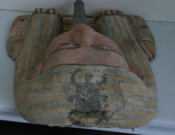 structure,separation gesso from wooden base,accumulation stable dirt on the entire surface of the mask