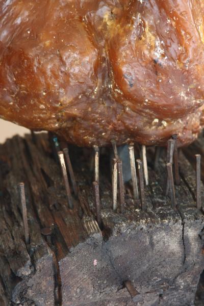 In process :a previously restored a tree peaces of the sculpture were joined a such way that a