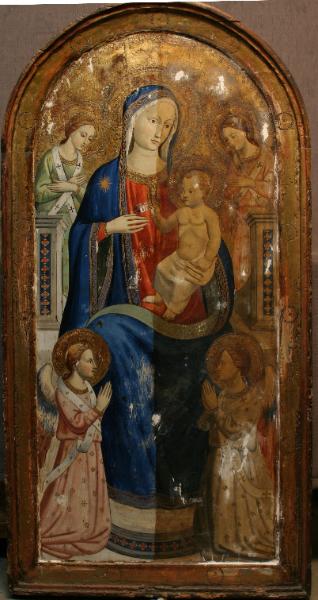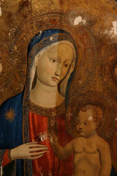 This work represent probably all processes that you can face with treatment of a large tempera painting on a panel