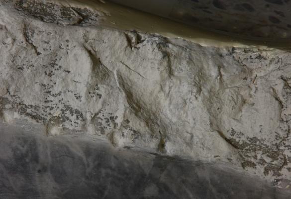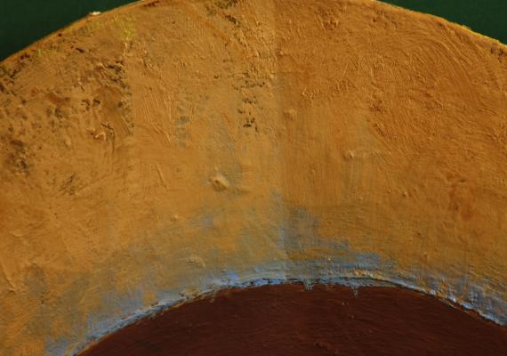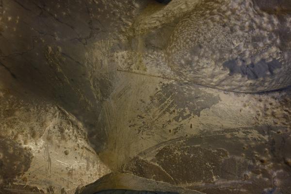 Before treatment :a fragment of the neck of the sculpture. A previously restored area.
