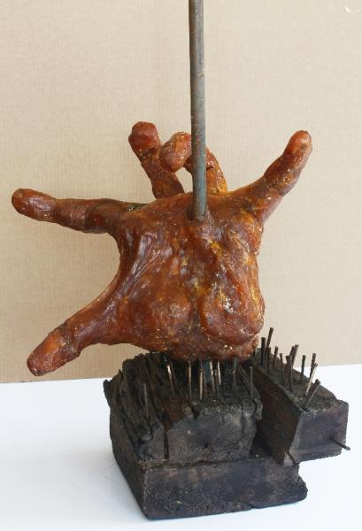 In process :a previously restored a tree peaces of the sculpture were joined a such way that a
